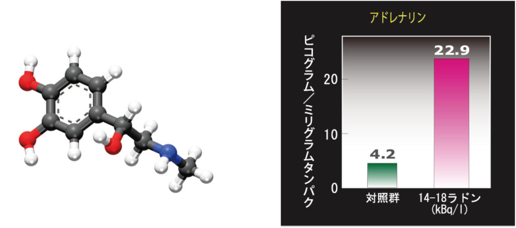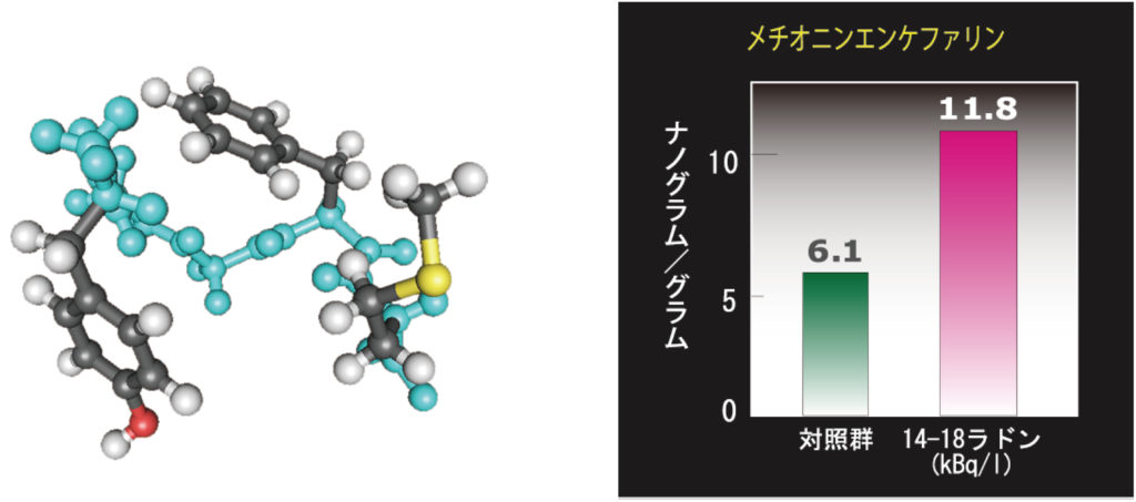 岡山大学の山岡聖典教授は、さらに同大学の古元嘉昭教授らともに、ラドン吸入によるホルモンの増加をラットによる実験体を使い調査しました。(各ホルモンの下記グラフ参照)いずれも各ホルモン分泌が、対照群である普通のラットに比べ明らかなホルモン増加が確認されました。