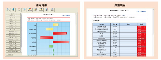体内24系統160項目の健康度情報を数値とグラフで表示